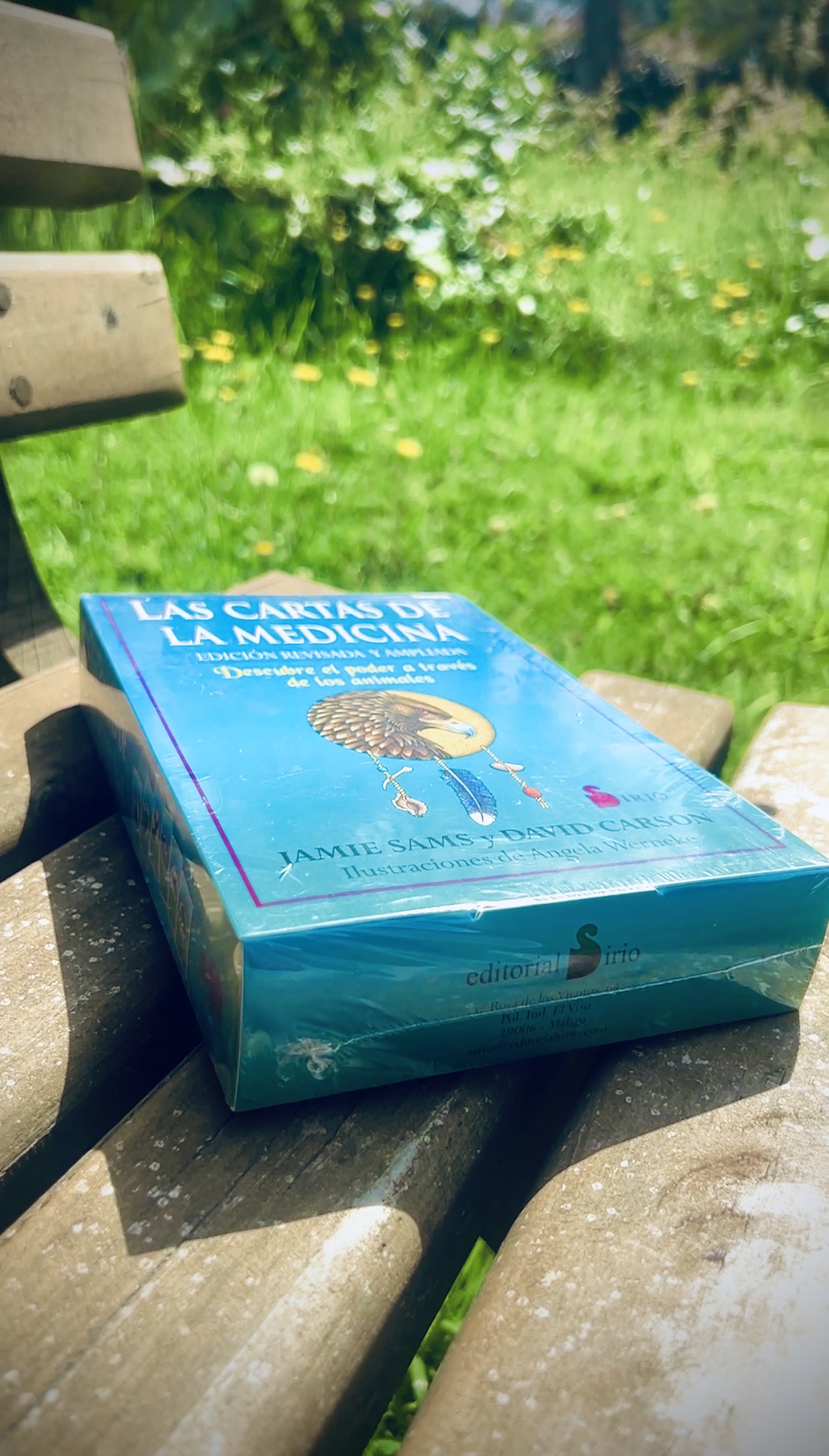 Todo espacio es un espacio sagrado. Cada centímetro de la Madre Tierra mantiene una conexión especialmente activa con alguna criatura viviente, y, por tanto, hay que honrarlo. La Rueda de la Medicina es una expresión física de este conocimiento y puede usarse para crear un espacio ceremonial sagrado. La Rueda de la Medicina es también un símbolo de la rueda de la vida, que siempre está evolucionando y brindando nuevas lecciones y verdades a quienes caminan por la senda. El Caminar por la Tierra se basa en la comprensión de que cada uno de nosotros debe estar muchas veces en cada uno de los radios de la gran rueda de la vida y en que hay que honrar todas las direcciones. Hasta que hayas caminado con los mocasines de otro o estado en sus radios de la rueda, nunca sabrás de verdad lo que siente. Este es una camino que lleva a la verdad, la paz y la armonía. El círculo nunca termina, es la vida, sin fin. Las Cartas de la Medicina son un método de adivinación que ha ayudado a millones de personas en todo el mundo a conectar con el Espíritu y encontrar su camino. Este estuche contiene un libro explicativo y un mazo de 52 cartas con mensajes y lecciones de vida basados en la sabiduría de los indios norteamericanos y el equilibrio natural de nuestros hermanos los animales.